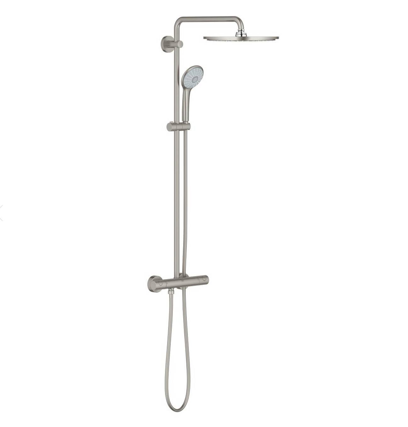 Dayanıklı ve çizilmeye karşı dirençli kaplaması sayesinde uzun yıllar ilk günkü görünümünü koruyan Grohe Euphoria System 310 G26075DC0, hem konut hem de otel ve spa projeleri için ideal, premium bir duvar tipi duş sistemi çözümüdür.